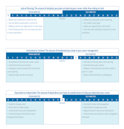 This 32-question assessment takes less than 10 minutes to complete. At the end you'll receive insights into your personal style of career planning. This includes a short interpretation to help you understand what the results mean and where you can go from here.